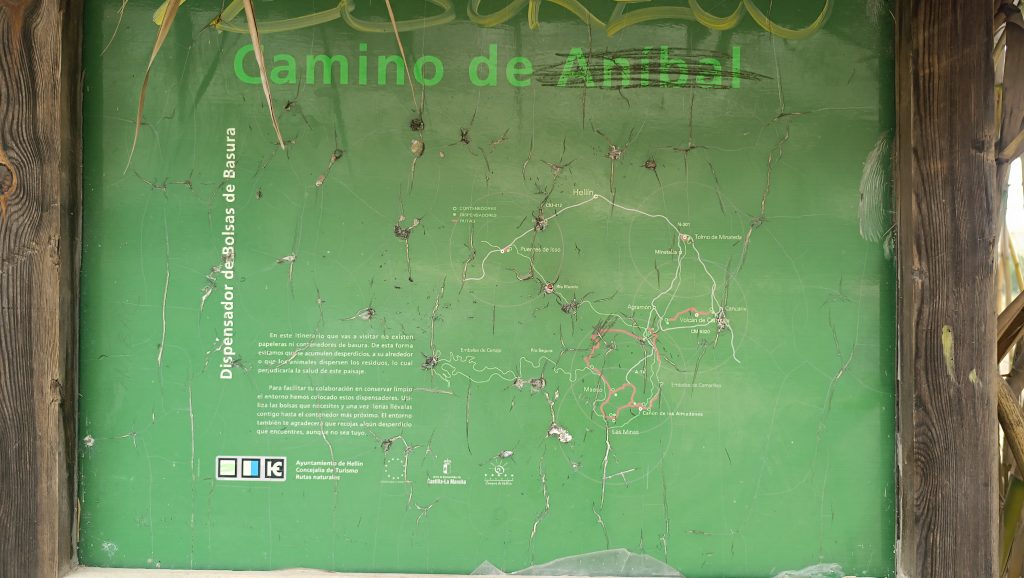 - Verlauf: Sie beginnt oft an der Straße, die von Agramón nach Las Minas führt. Nach Überquerung der Brücke über den Río Mundo gibt es einen Indikator für den „Camino de Aníbal“, der auf einem Forstweg parallel zum Flusstal verläuft.
